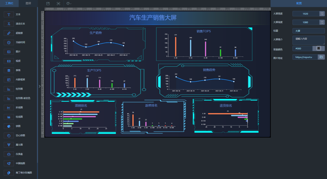 三步轻松完成大屏设计:配置数据源---->写SQL配置数据集---->拖拽配置大屏---->保存发布。欢迎体验。