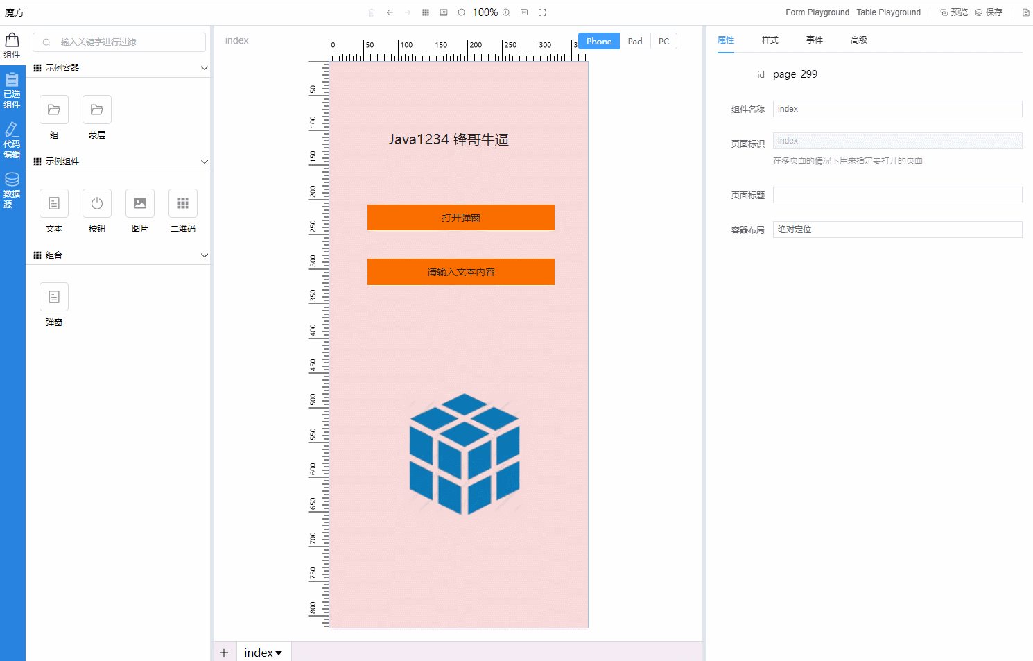 这里指通过对组件的拖拽和配置,完成页面编辑,主要由非技术人员完成。