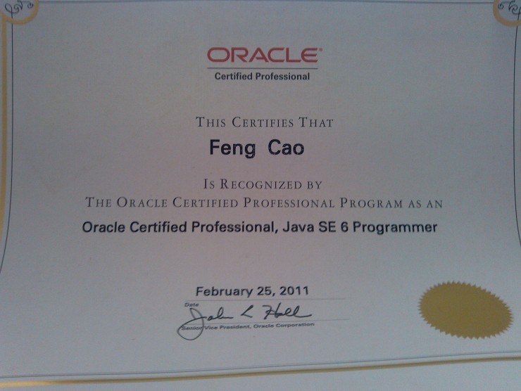 Oracle认证Java程序员证书: