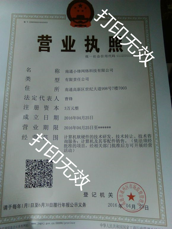 企业营业执照(诚信经营):